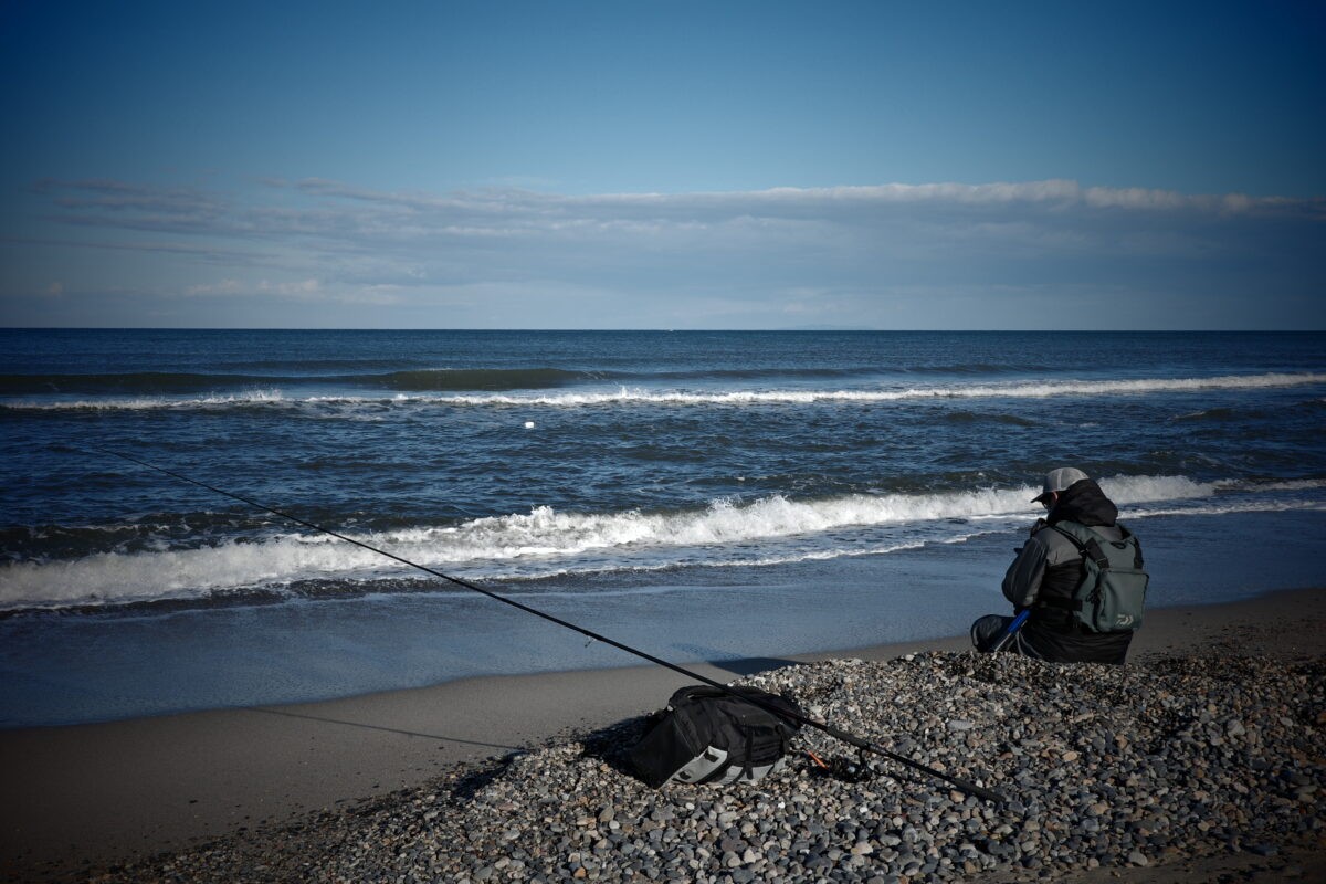 海岸線を歩いていて波打ち際に形の良い流木が・・・近づいていくと釣り人だった。声掛けしてポチったけど、彼はずっとスマホをいじり続けていた。つまり流木と思ったその時から同じ姿勢。