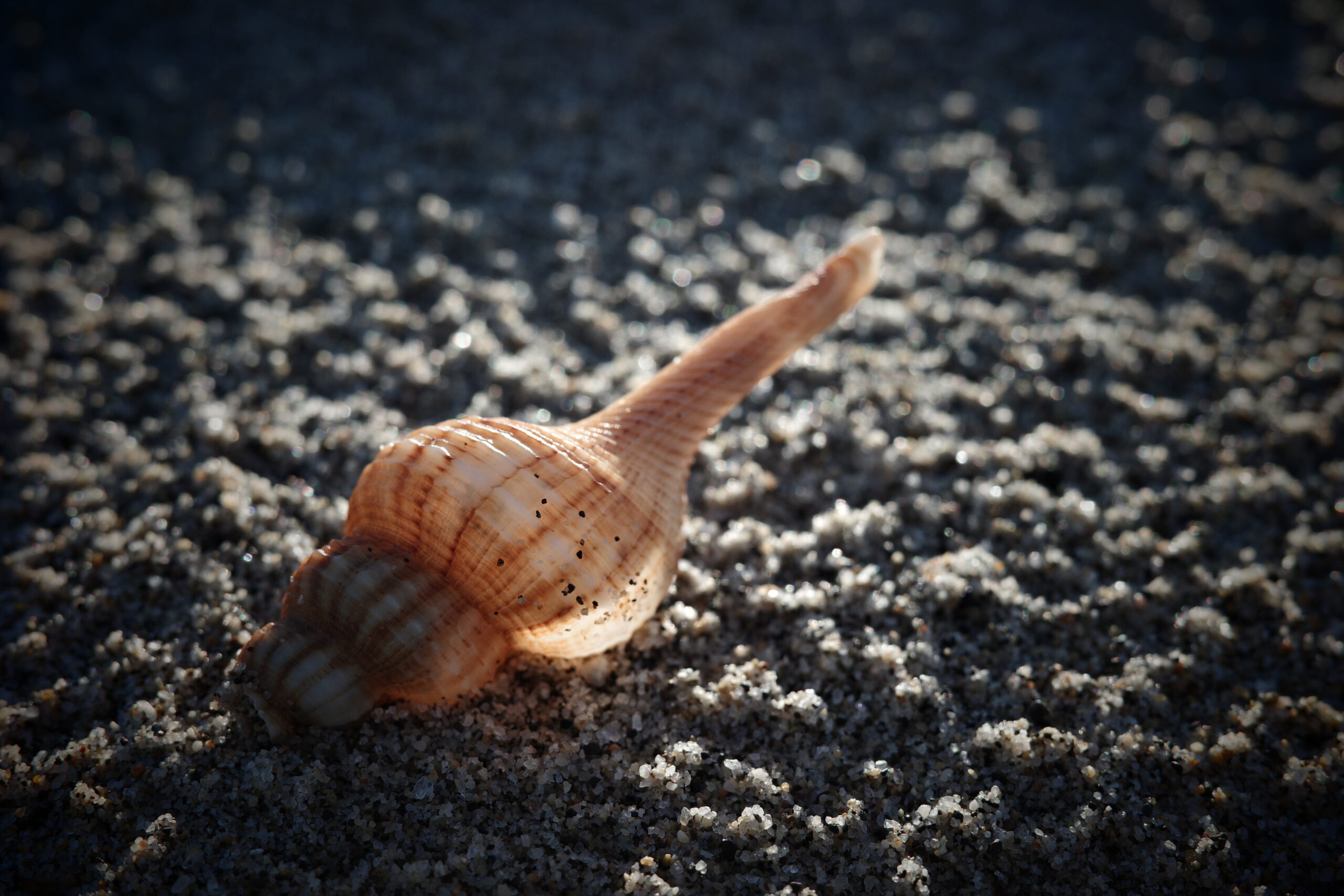 窪みの潮溜まりで巻き貝の亡骸を撮る。