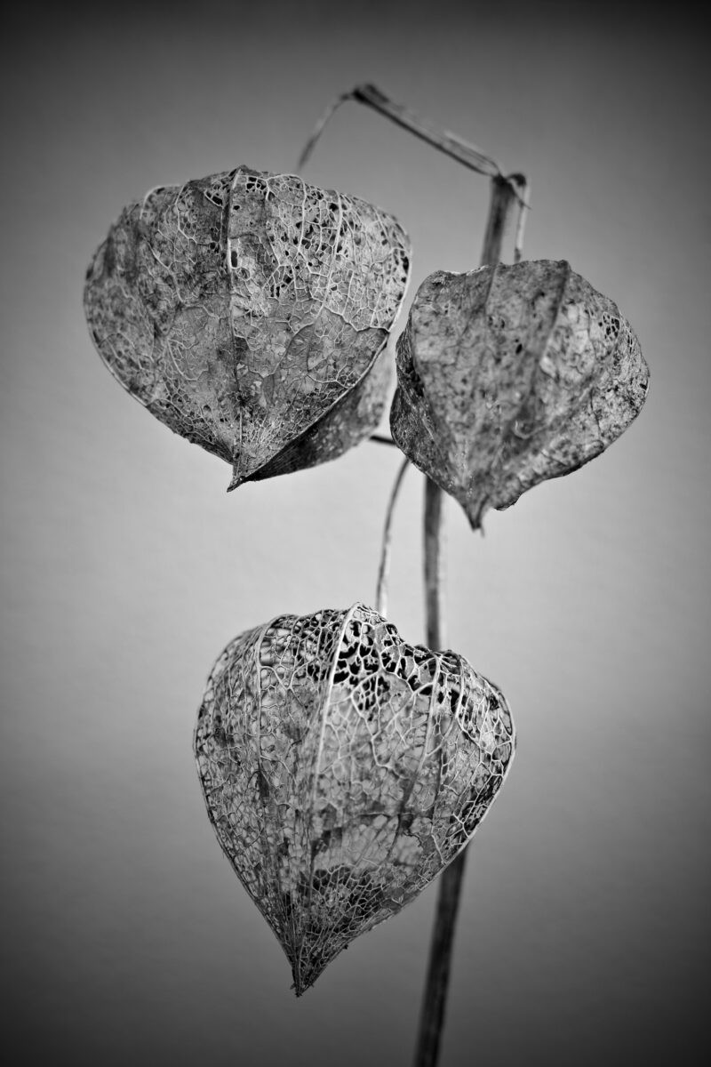 実家の庭の冬囲いを手伝う。枝を丸めて縛ったり、ネットを被せたり。そんなことしてたら、片隅でコレを見つけた。納屋で保管していたのを撮影のため持ち出し、そのまま放置した枯れホオズキだ。