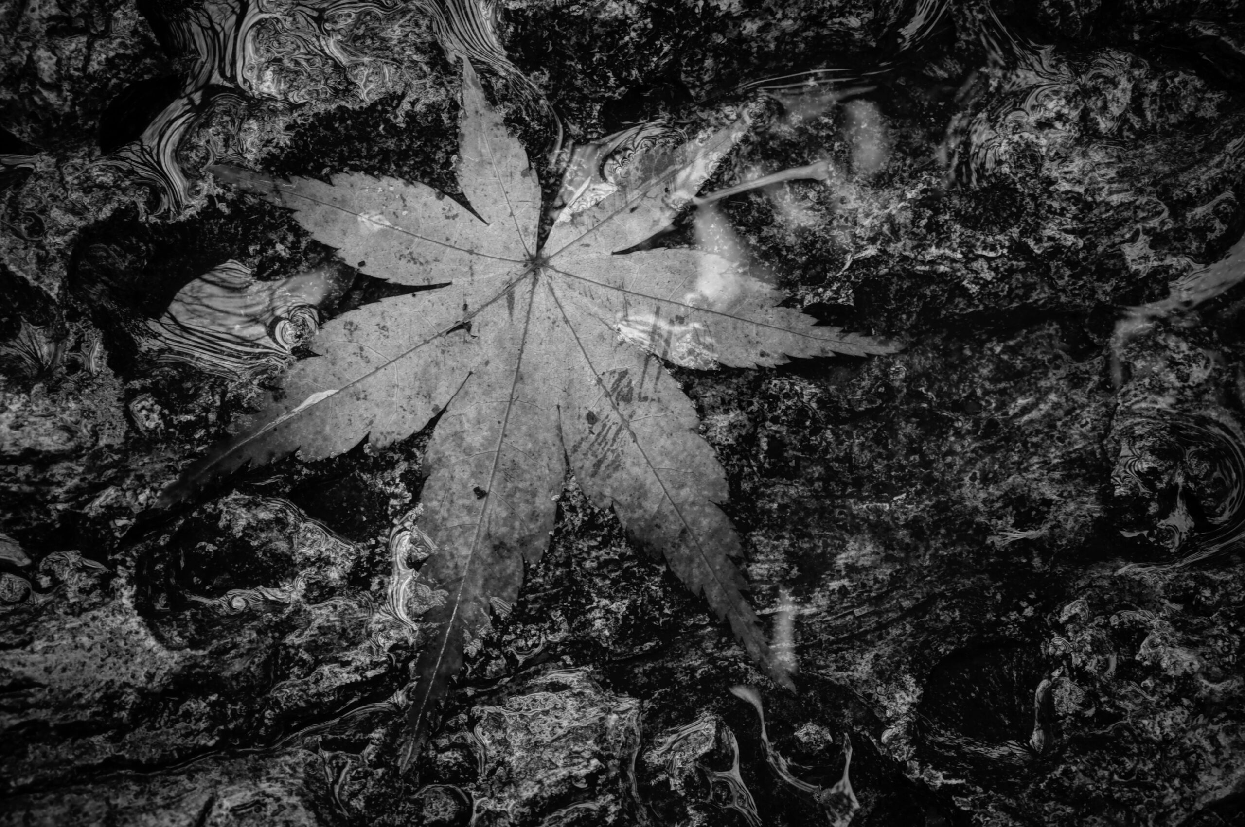 小さな撮影スポットを見つけた。こりゃぁ、被写体のモミジだけじゃなく、石(岩?)の紋様も絵になるなぁ~となって撮影当日に角度を変えながらバカスカ撮っていた。