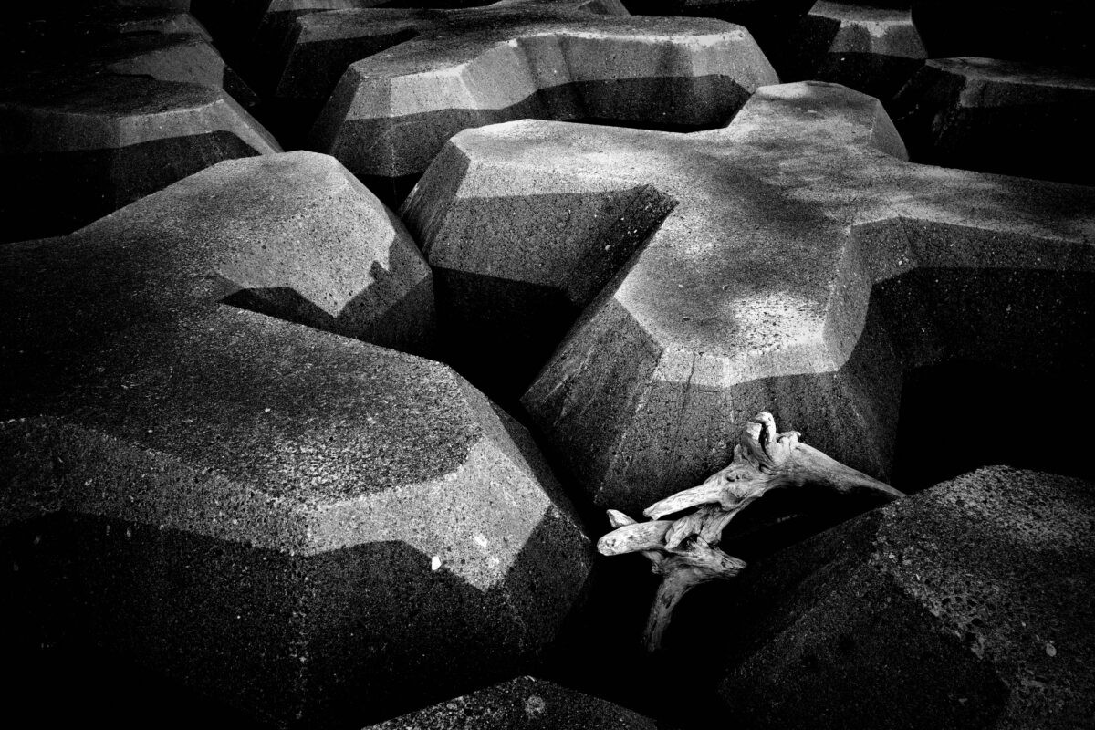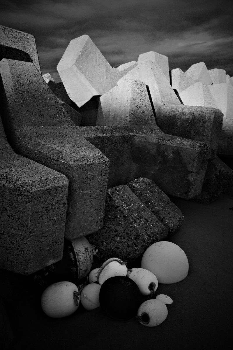整然と並んだテトラの隙間に流木やら浮き球が挟まっていてソレにカメラを向ける。なんてことない対象なんだけど、先ずはこの日この瞬間、ボクは此処にいたわけだ。