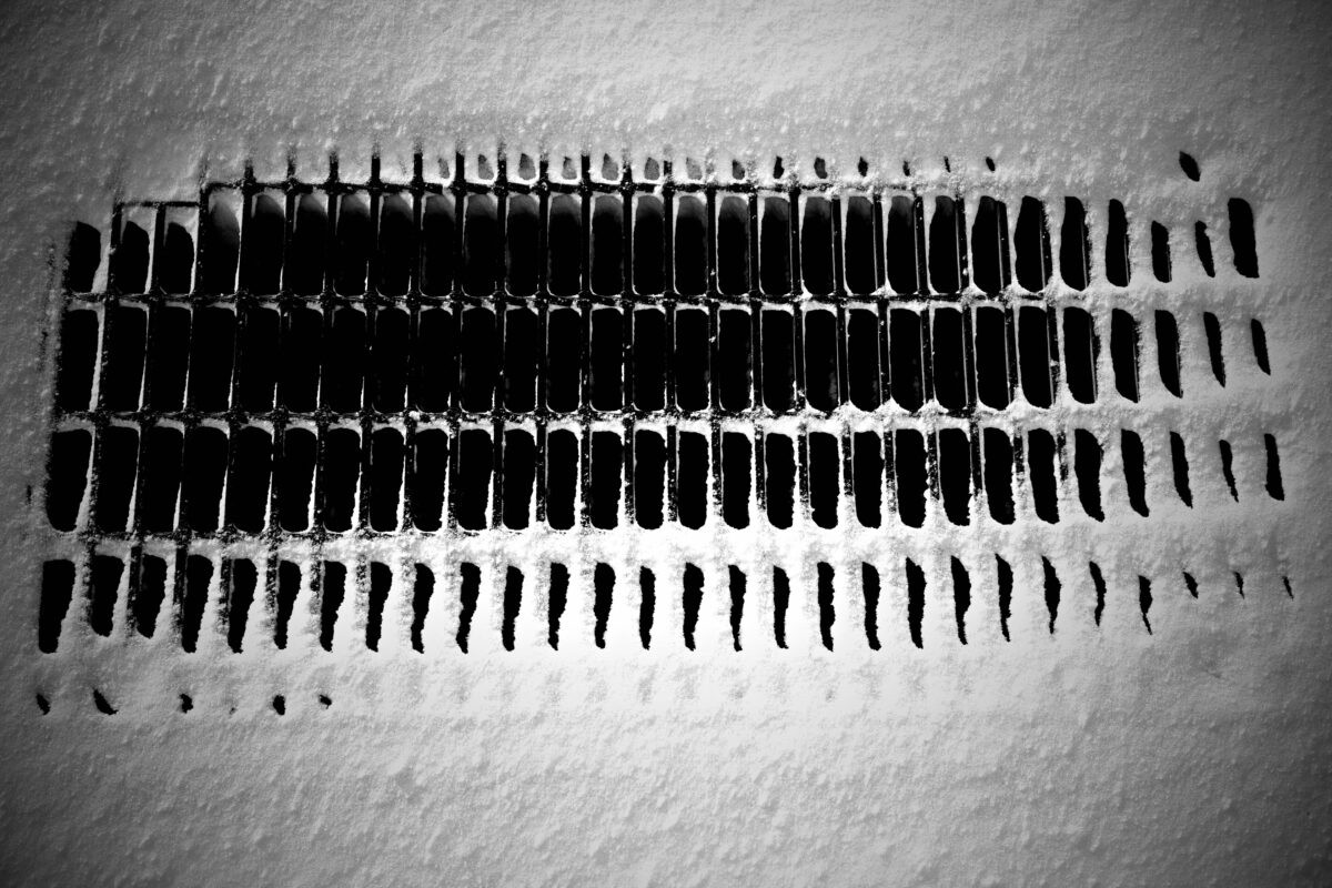 消雪パイプの傍らで凍り付いた路面を多く見た。道路はツルツルで小刻みに歩く。時折、バサ~と霰が降って、顔面に当たる。そうかと思えば雲間から陽が降り注ぐ。