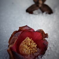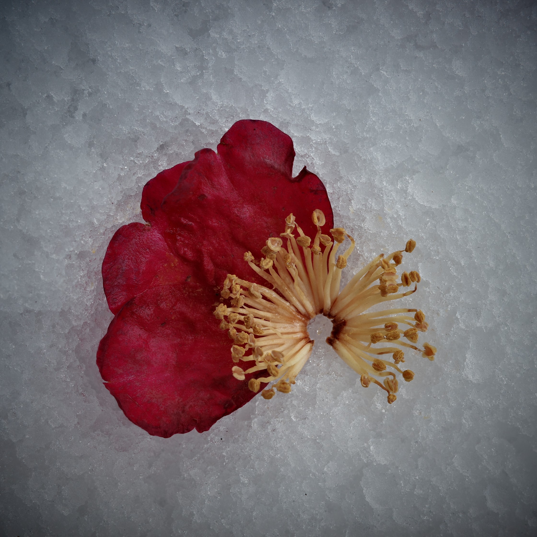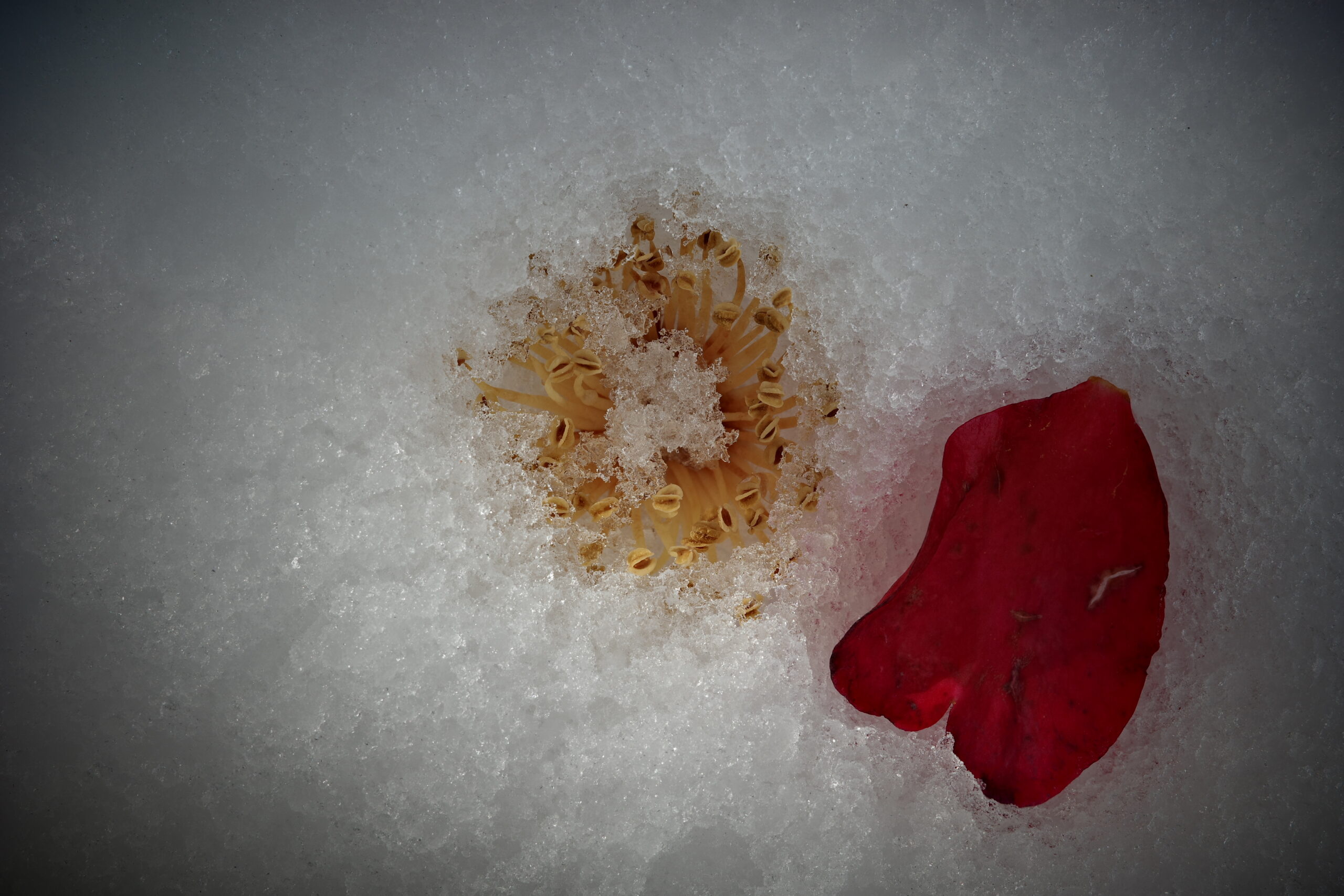 雪の中に埋もれていた花びらやシベが浮かびあがってきた。このまま雪解けが漸次加速していくとは思わないが、しゃがんでカメラを構えた際、土の熟れた匂いを感じた気がした。