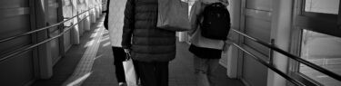 佐渡汽船乗り場へ向かう家族