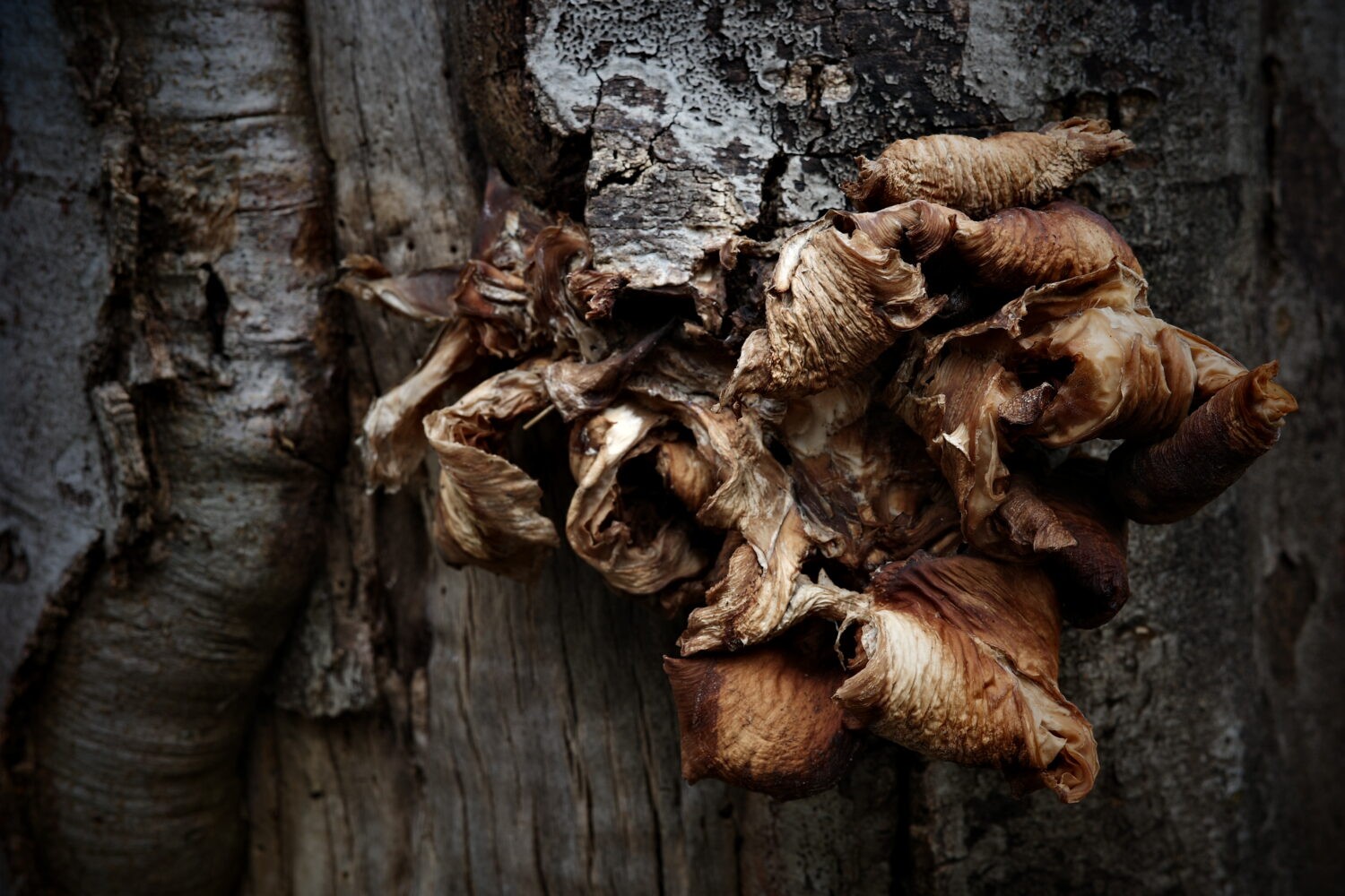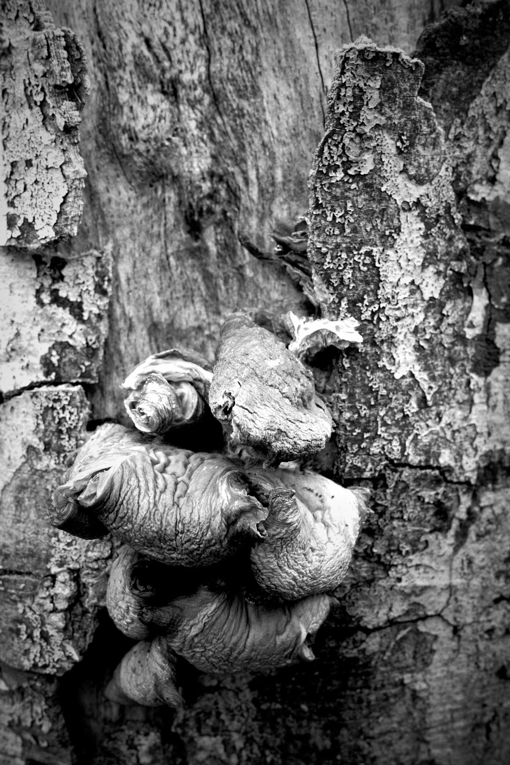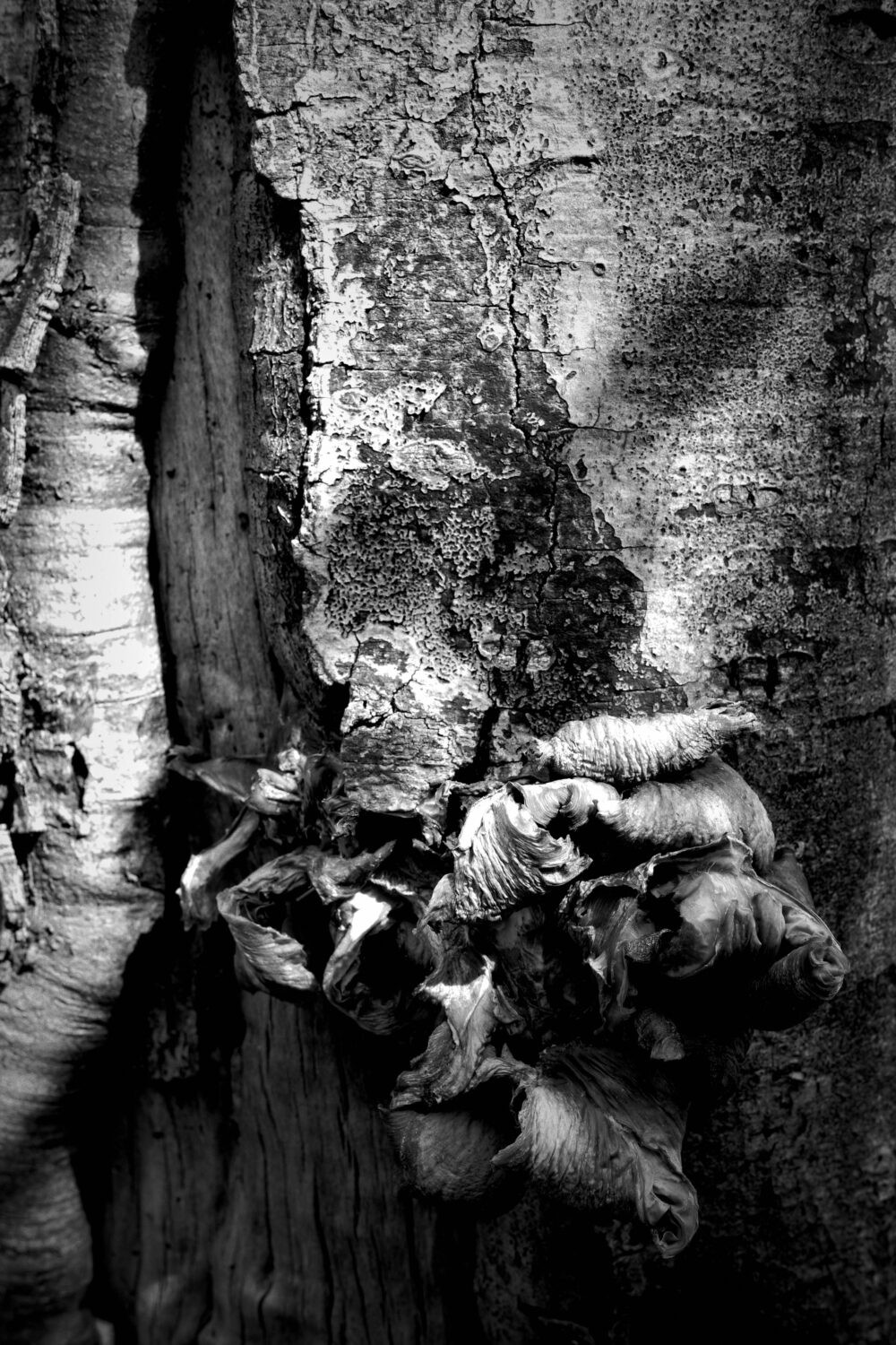 今日1番の思い入れはブナの幹から生えたキノコ。撮影時は陽が照った。キノコは昨年の秋のモノだろう。日が経って乾燥したに違いない。何か食べられそう。母体hブナ。食えない気がしない。