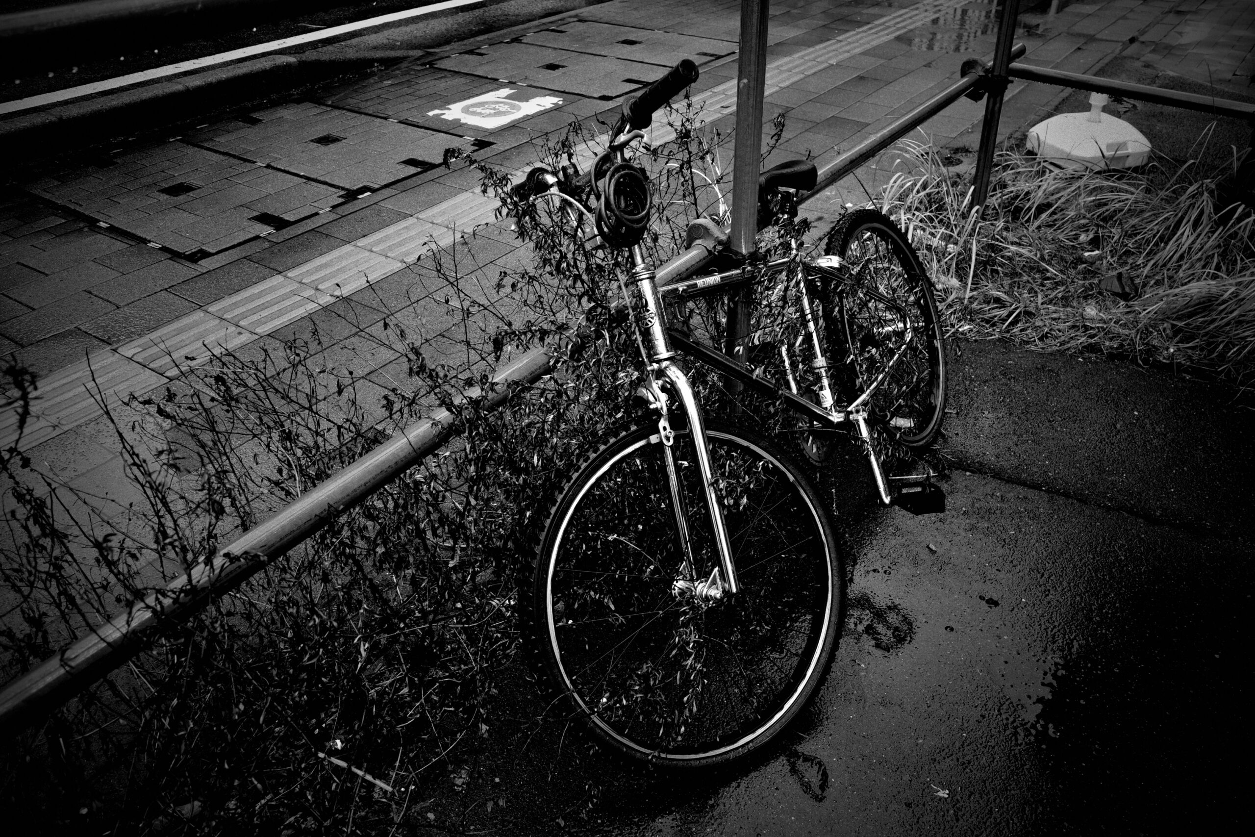 今月15日の日曜日に撮影してる。早朝でもないが通りに人影はなし。雨のせいでもあるまいし。背中に雨粒を浴びながら、カメラを構えるにはやっぱり難儀する。