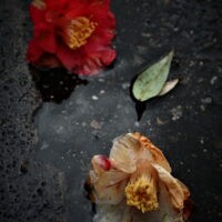 今年も図書館脇の桜が一番に咲いた。椿も沢山落ちてる。