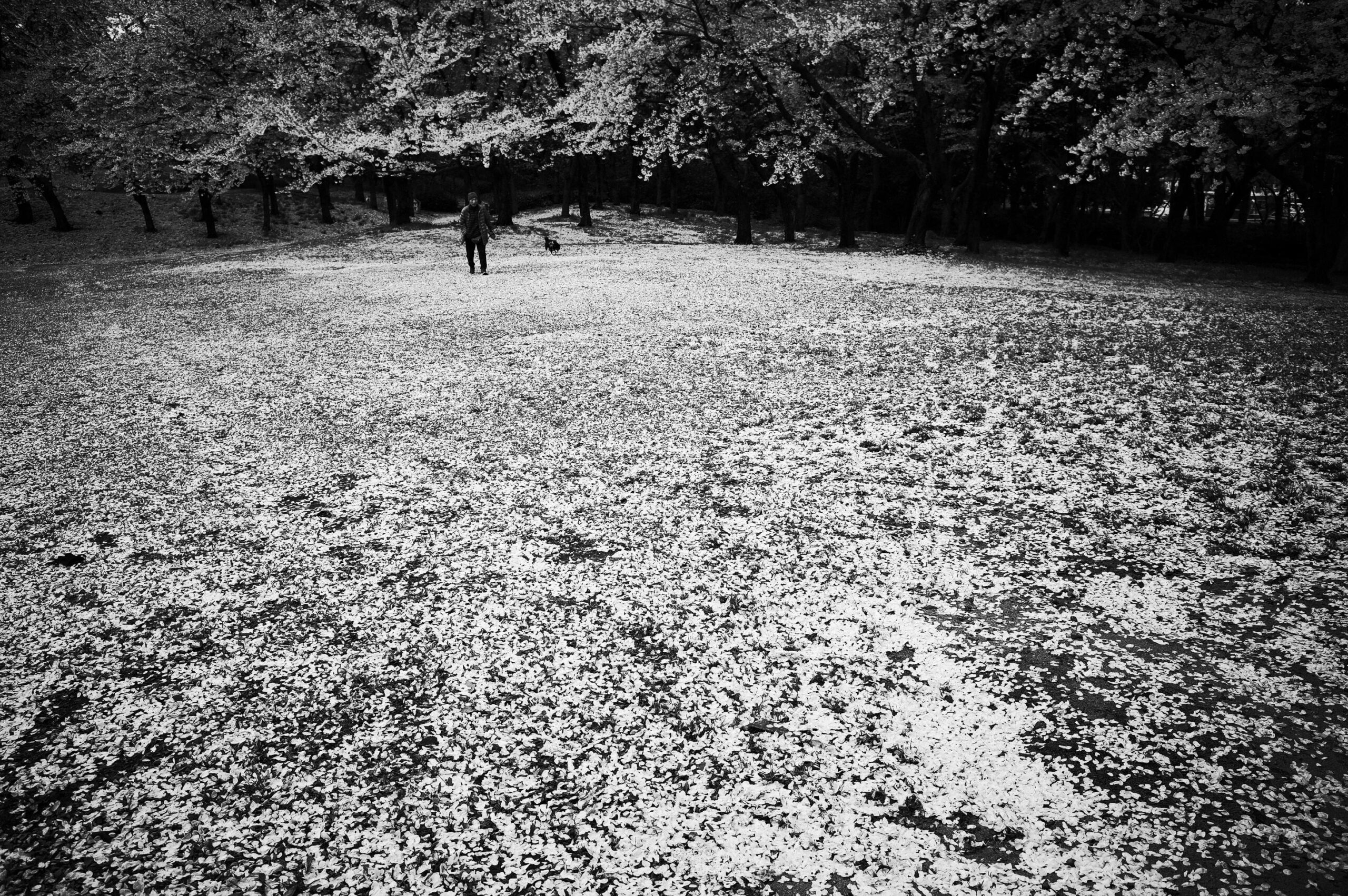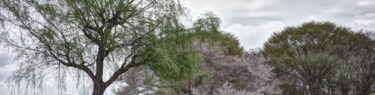 朝でないと見られない光景。駐車場は轍ひとつなく、園内では人の足跡は僅か。花冷えを思わせる天気。それでも、10時頃には敷物を抱えた花見客が繰り出してきた。移動キッチンカーも設営準備に大忙し。
