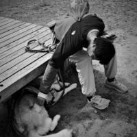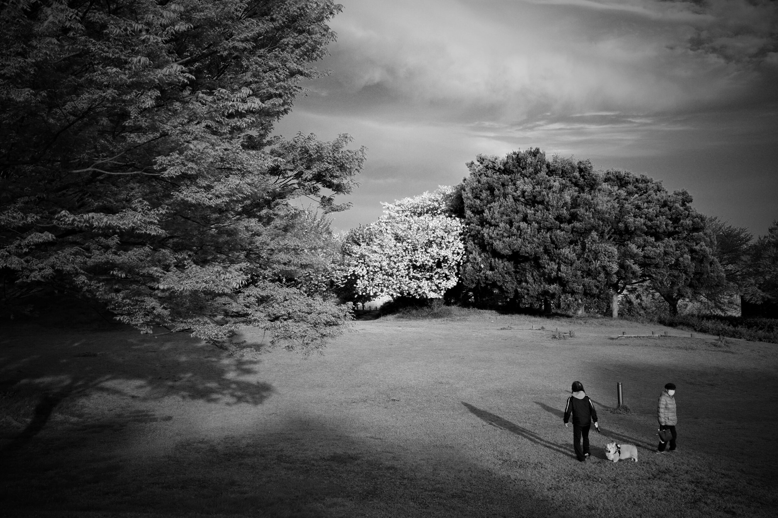 一段落した頃に犬コロがやって来た。ボクは高台まで小走りし、彼らをポチる。