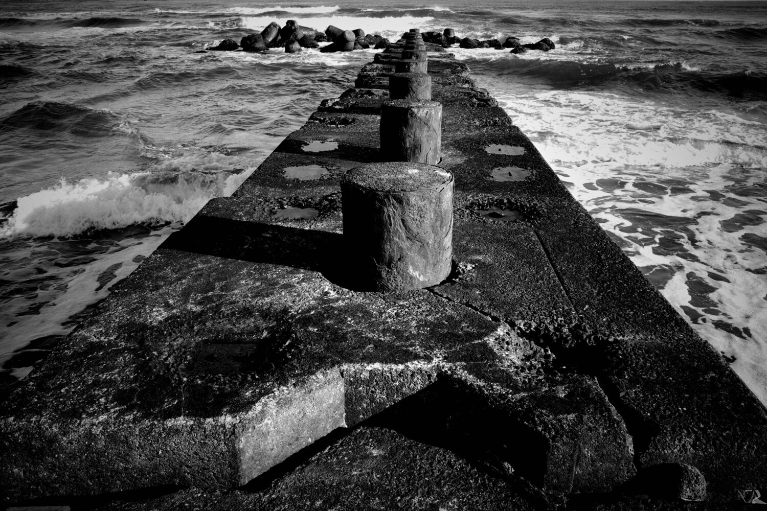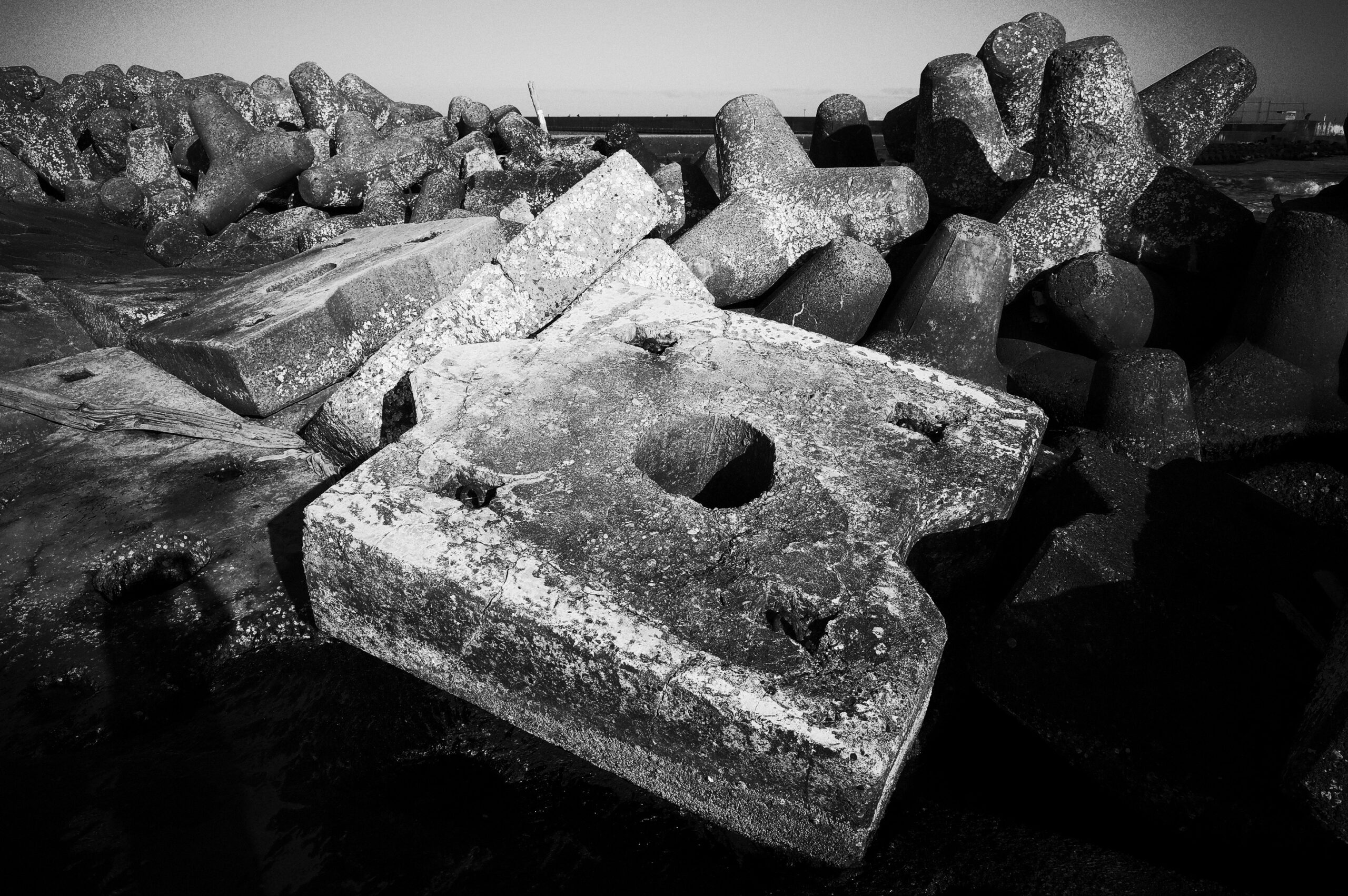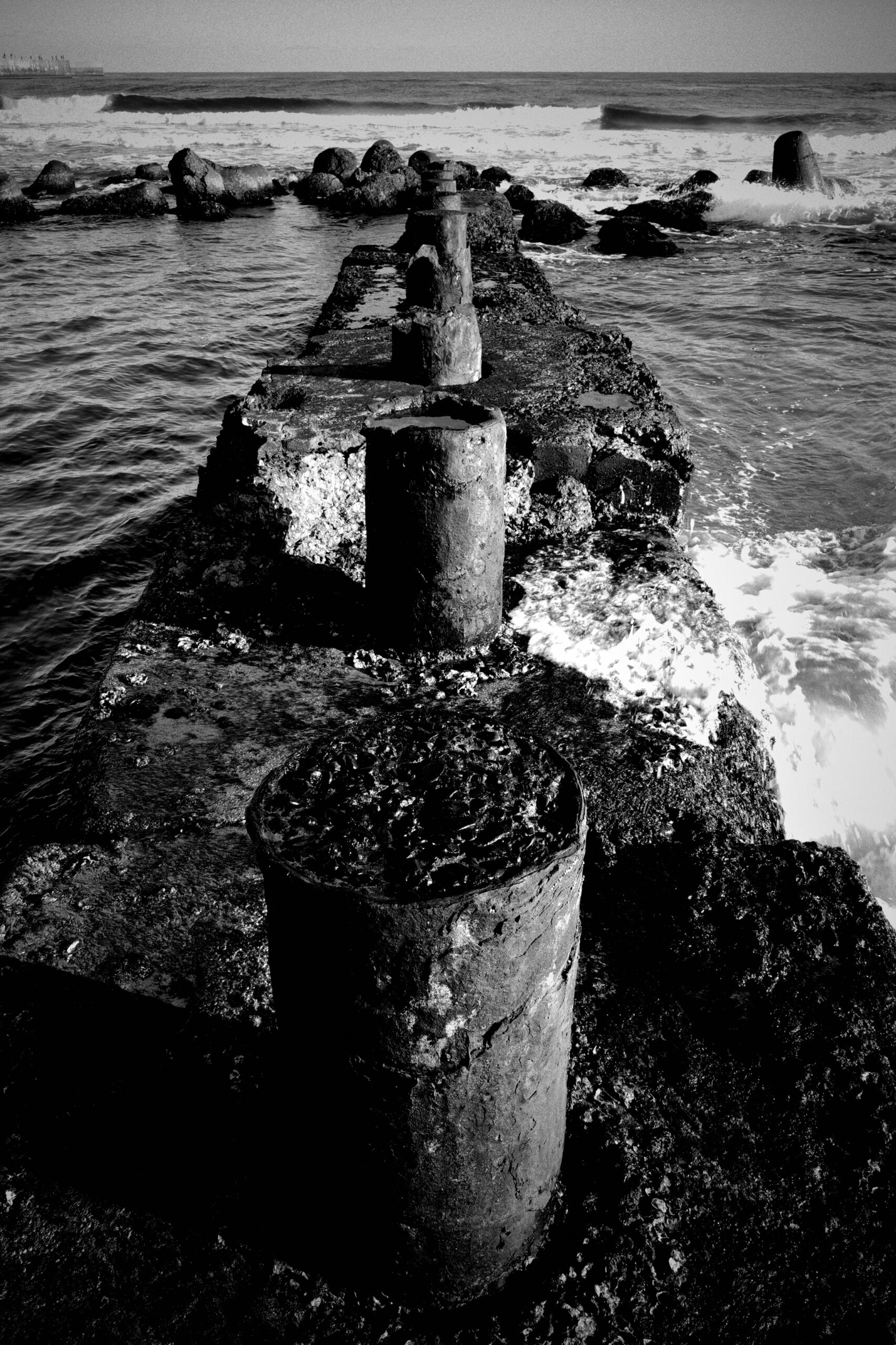 絶好の天気、しかも土曜日ということで、防波堤の遙か先端に釣り人が沢山いるのが見える。彼らは命張ってんだろう。自己責任なんでしょうけど、恐怖を感じないのかな。